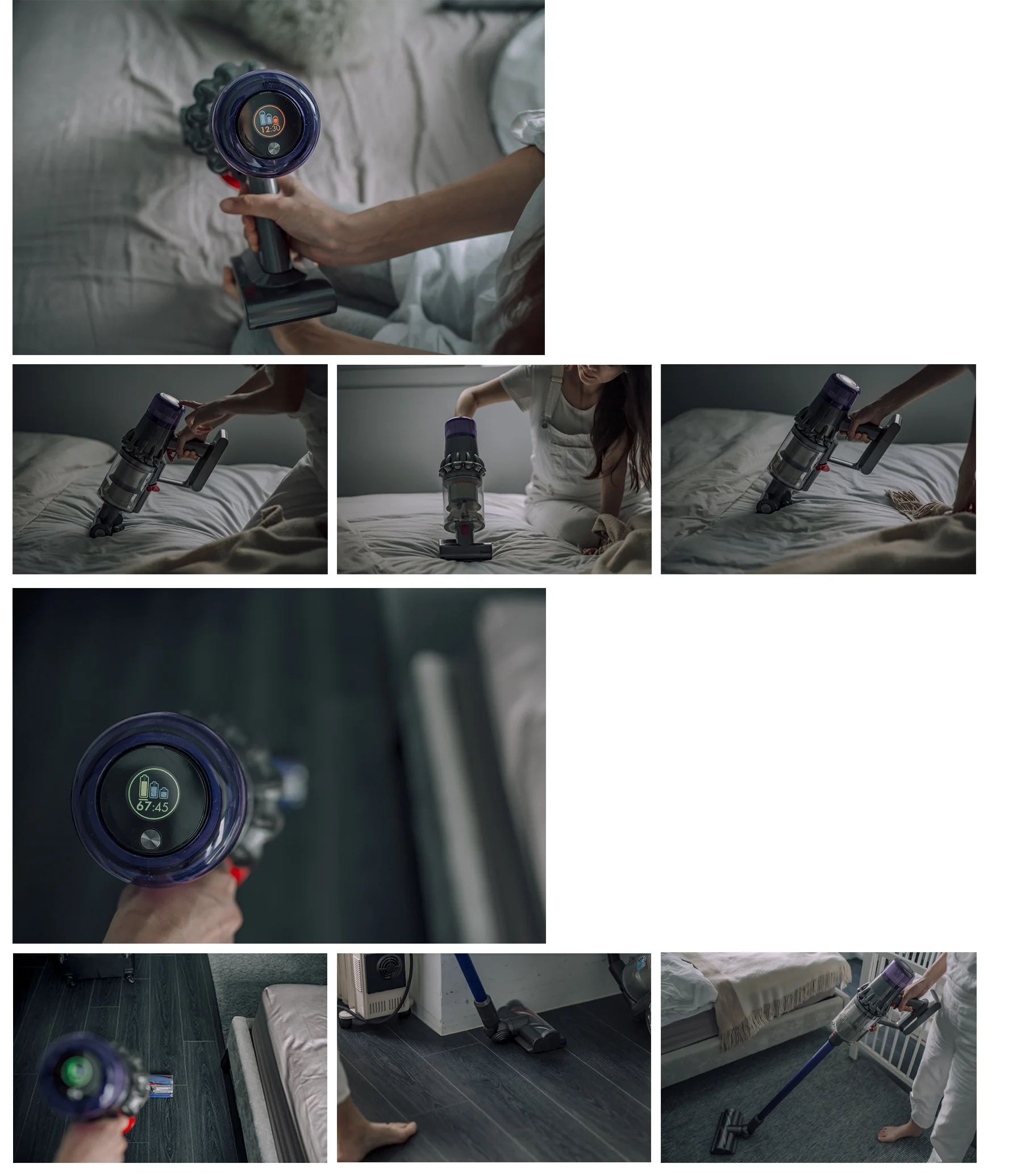 以往就是開到最大吸力,才覺得能吸的最乾淨,但也常碰到還沒清掃完就要沒電的困擾,現在V11在螢幕上可以清楚的知道還有多少的電力時間,方便查看吸塵器當前的吸力狀態,在分別使用三種電力模式的情況下,還可隨時查看到剩餘工作時間,讓我們在打掃上可以先分配區域,像是太太會先使用強力模式先吸床墊,之後再用節能模式來吸地板,剩餘時間都還綽綽有餘可以打掃完家裡地板!告别以往續航力不足帶來的困擾。