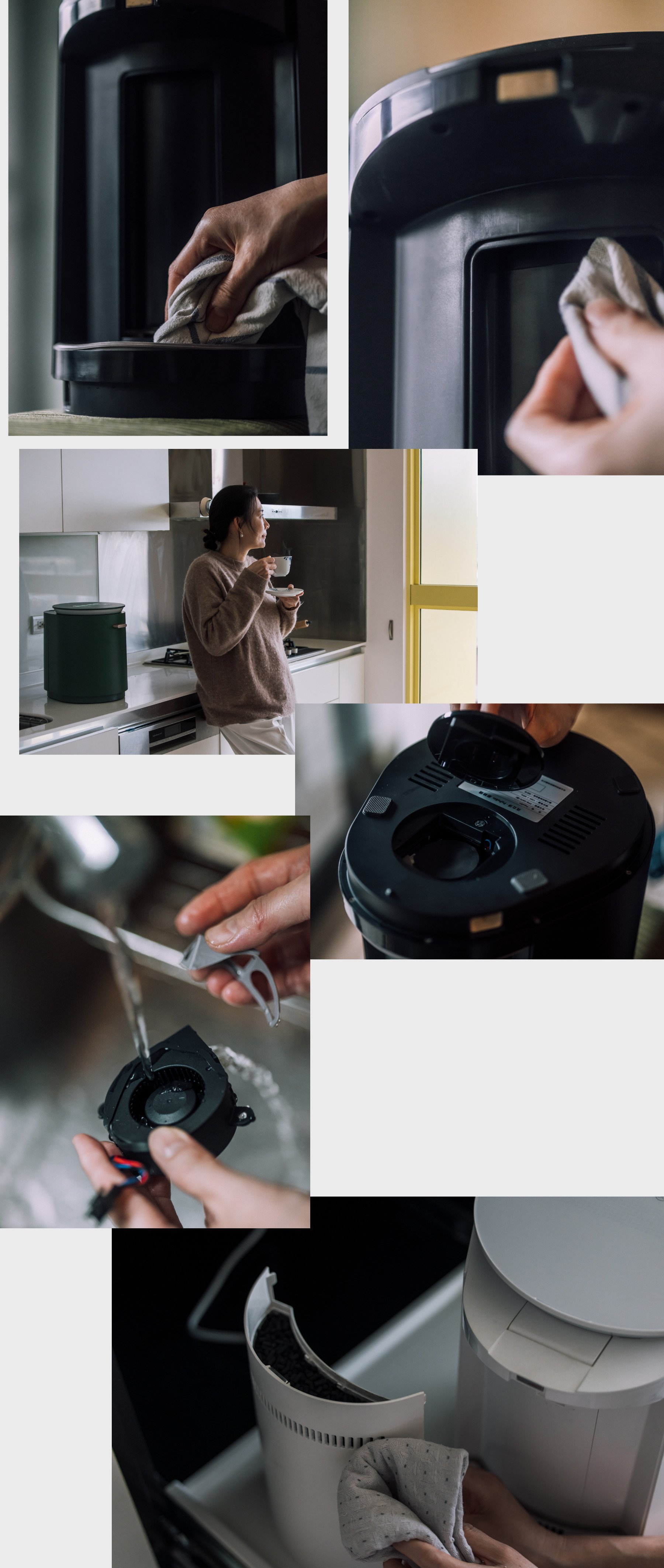 操作上就是把一天的菜渣、果皮、剩飯丟進去,按下啟動讓它自己跑完行程。對忙碌的家庭來說,最大的好處其實是 不必每天追垃圾車、也不用在陽台放一桶會發酵的廚餘,整個生活節奏舒服很多。
