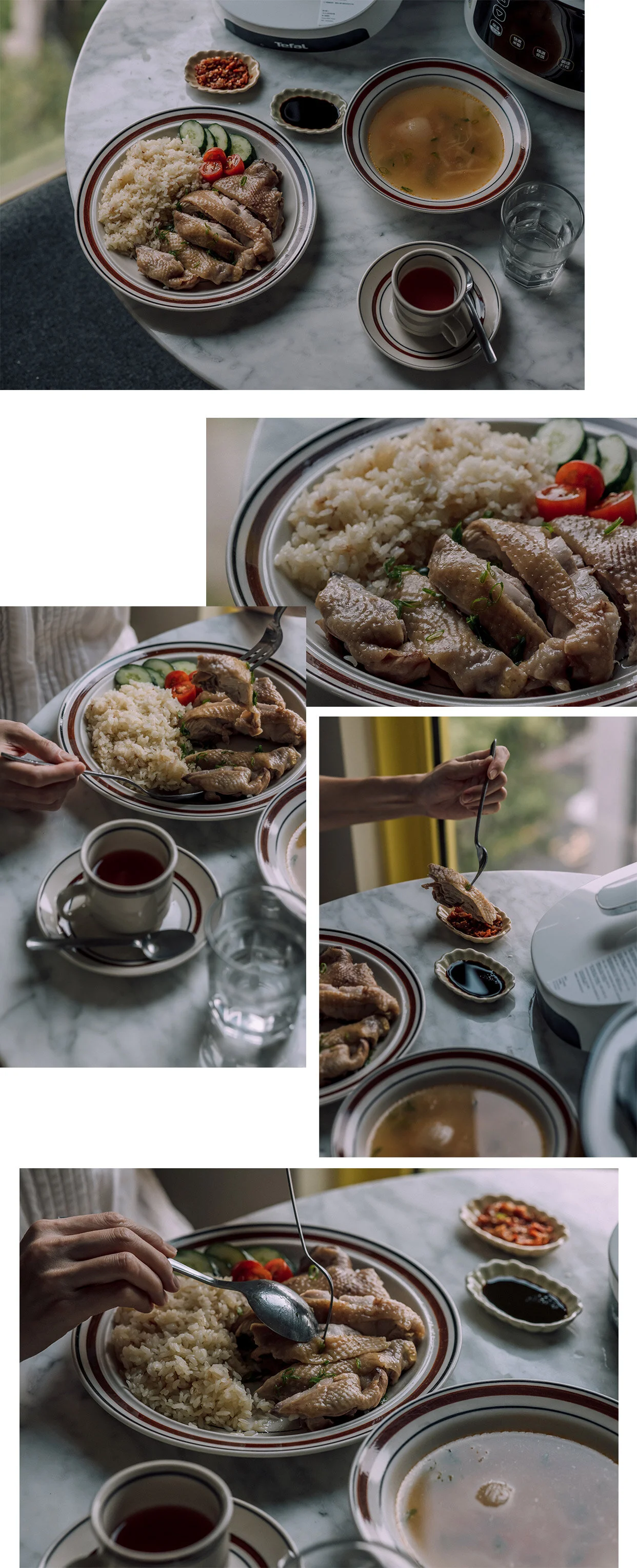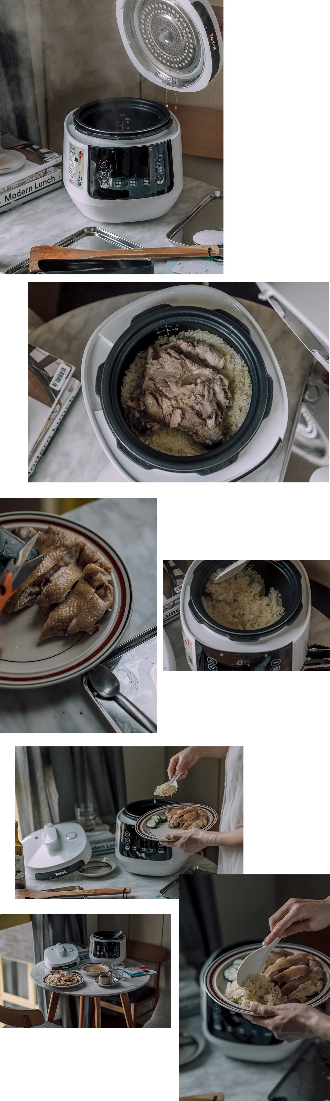 真的非常簡單,之前做海南雞飯需要開火先炒香,再使用電鍋蒸煮,有時會發生米飯蓋在下面導致飯沒熟透、擔心雞腿沒全熟的問題,現在用萬用鍋就能輕鬆完成,只要把食材準備好,按照步驟就能輕鬆完成海南雞飯。