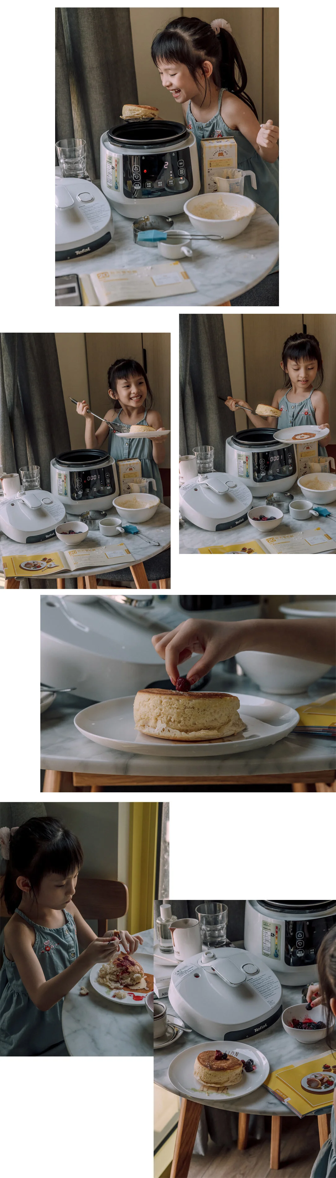 大女兒最喜歡吃鬆餅,也喜歡看媽媽做鬆餅,總是怕爐火燙到不太讓女兒站在瓦斯爐前,使用萬用鍋的快炒功能,開蓋使用不怕爐火的危險,媽媽在旁邊看著幫忙按鍵,小朋友也能很開心的自己做甜點,全程都是女兒自己好開心的完成。